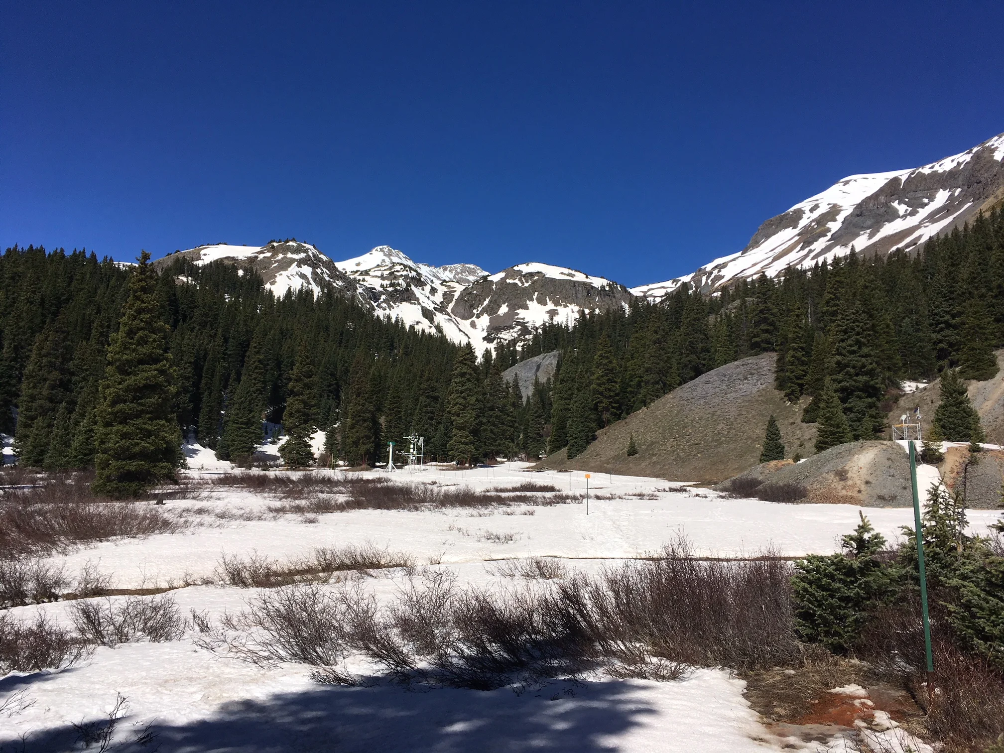 May 14 at Swamp Angel. Snow sensor reported 0" of snow depth on May 16 at 1 pm. Although, there is still some snow yet to be melted.